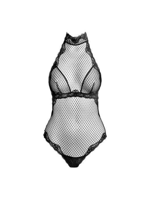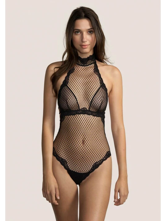 Body particulièrement sensuel, entièrement réalisé dans le tissu treillis de la collection, avec une légère doublure au niveau de la poitrine pour un maintien et un ajustement parfaits, détails en dentelle le long de l’encolure, sur les côtés et sous la poitrine.