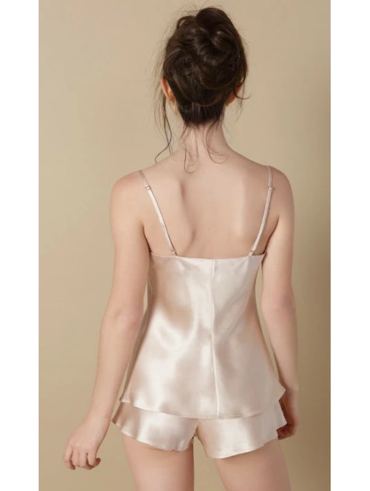 Caraco 100% soie naturelle à bretelles fines réglables de la marque MARJOLAINE