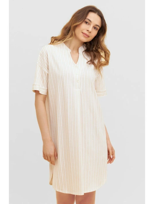 Chemise de nuit manches courtes de la marque FÉRAUD – Imprimé rayé chic et lumineux
