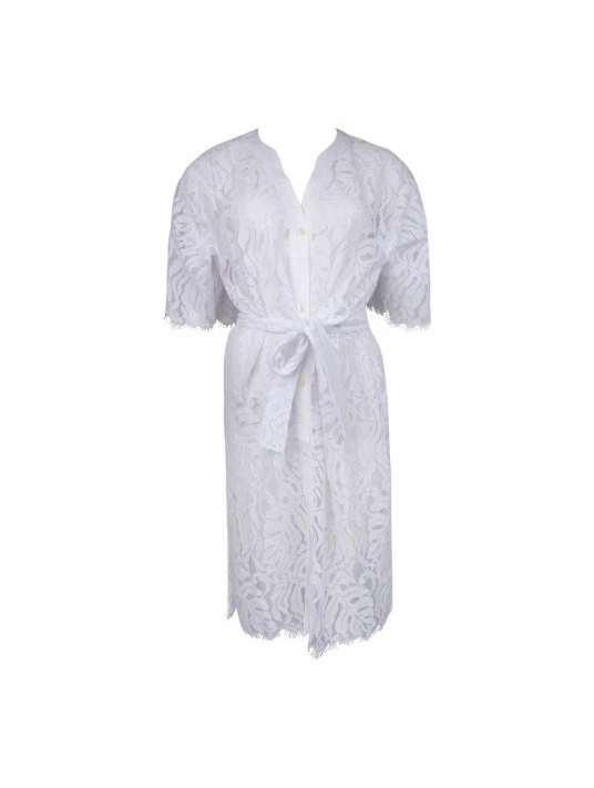 Chemise en dentelle macramée, festonnée en bas des manches et de vêtement pour une finition délicate.
