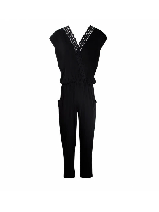 Combi-pantalon à manches courtes en voile de viscose.