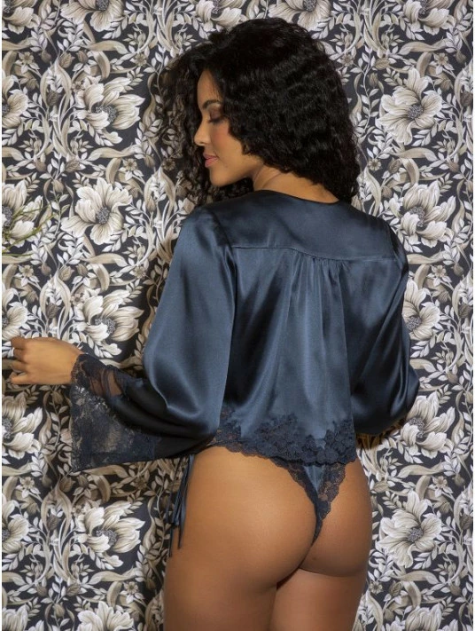 Dentelle ton sur les bords de manches, l’encolure et au niveau de la base de la vesteFermeture : Liens de satin Ă noue