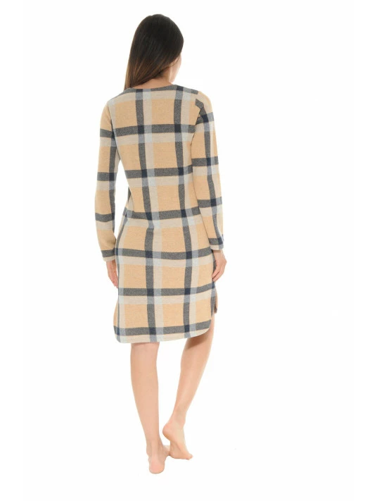 Liquette Pilou beige Ă carreaux Tartan, manches longues et col tunisien traditionnel avec ouverture 2 boutons afin de pouvoir l’enfiler facilement par la tĂŞte.
