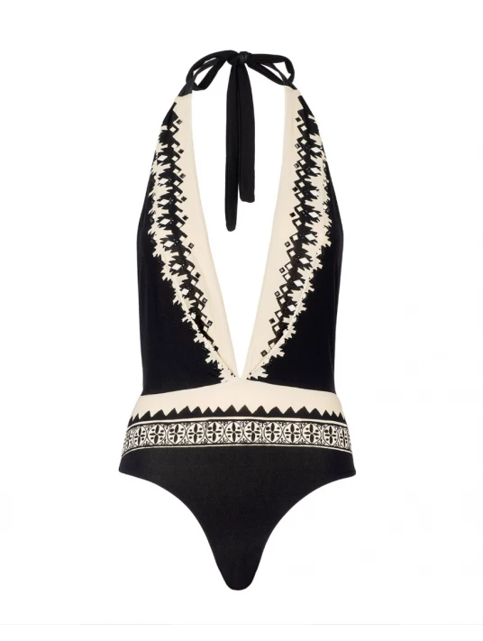 Maillot De Bain Une Pièce Imprimé Noir & Blanc