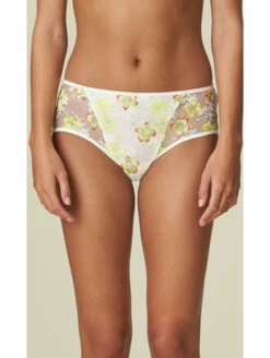 Le ruban qui en garnit la taille et les échancrures renforce son petit côté original. Un motif floral captivant aux accents jaune fluo tendance.