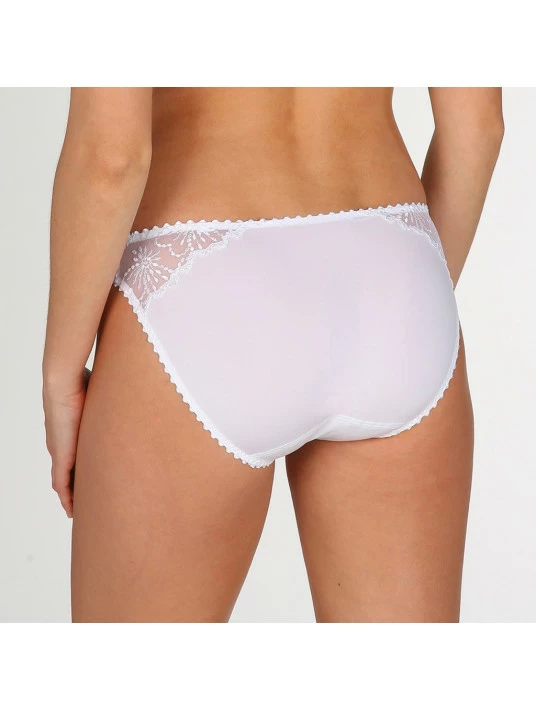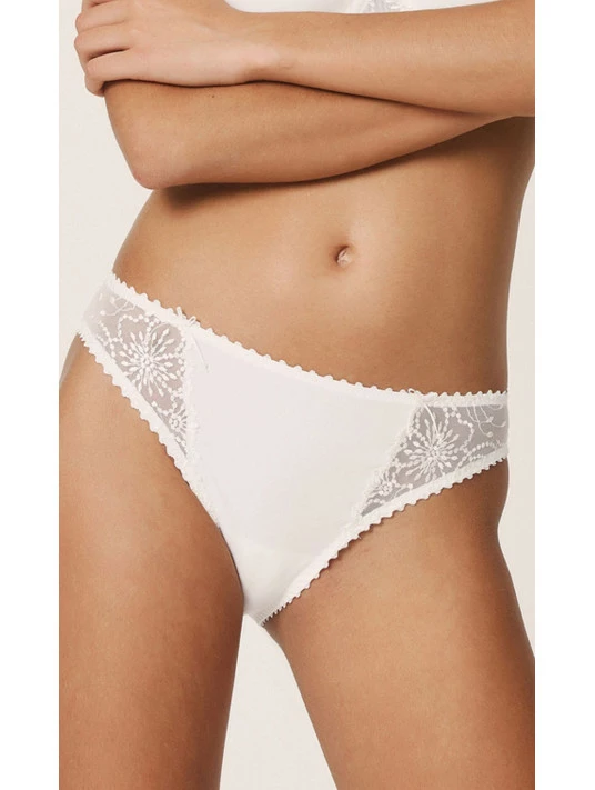 La broderie est déployée sur les hanches et met en valeur la ligne élégante de ce slip.