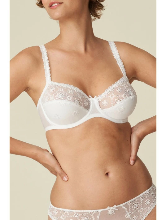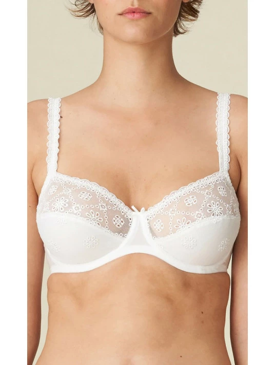 Une broderie anglaise de confection suisse, une coupe ultraconfortable et de délicates bretelles : ce soutien-gorge à armatures disponible en bonnet D et bonnet E a tout pour plaire.