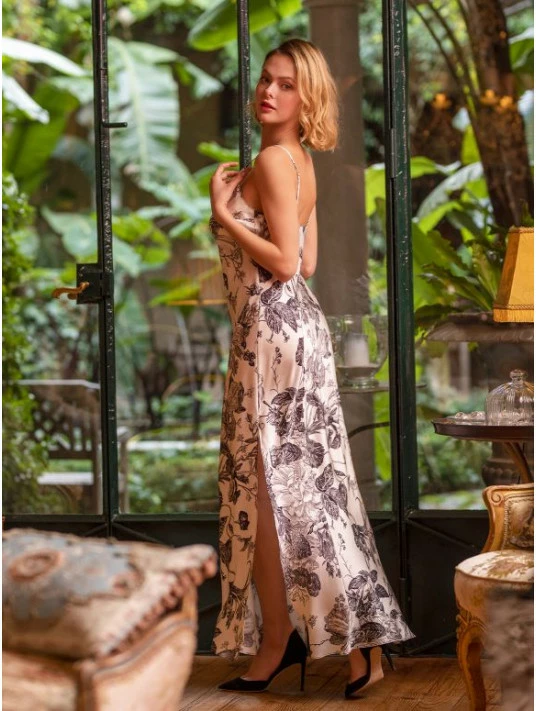 Avec son tombé fluide ajusté, son décolleté en V saisissant et ses fentes sur les côtés, cette pièce est un condensé de légèreté et sensualité.