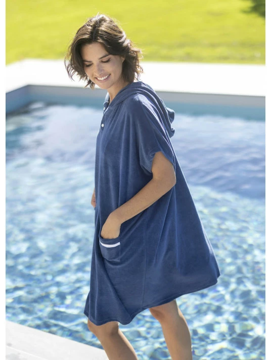 Il est doté de manches courtes ainsi que d’un col avec ouverture par 3 boutons afin d’ajuster le poncho selon vos envies.