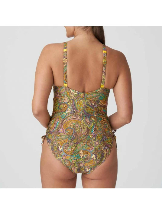 Maillot de bain une pièce élégant affichant des bonnets triangles très échancrés, tout comme le dos.