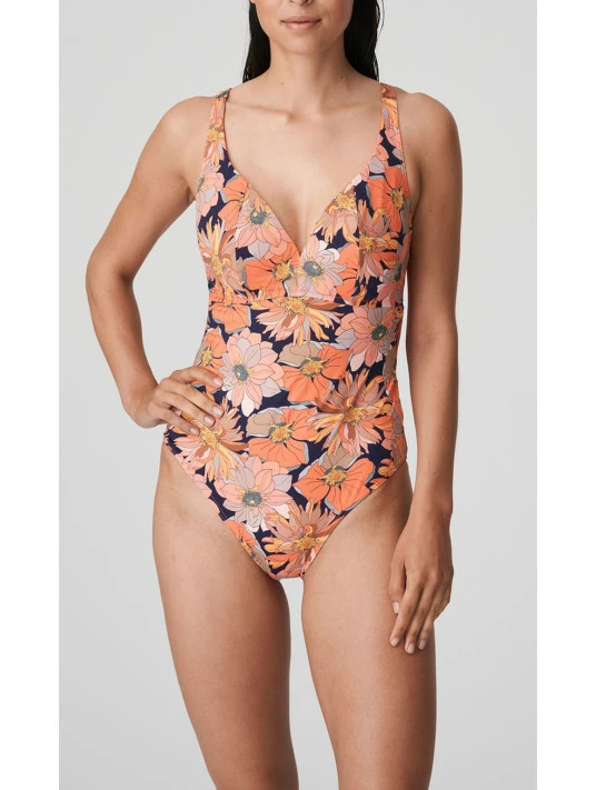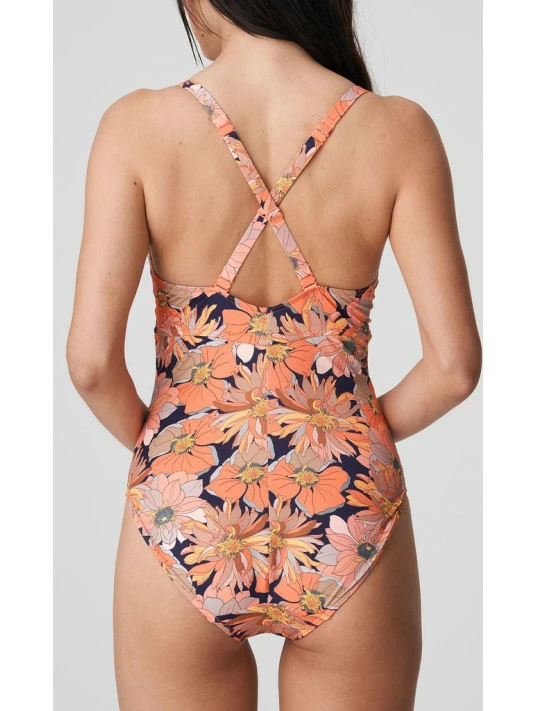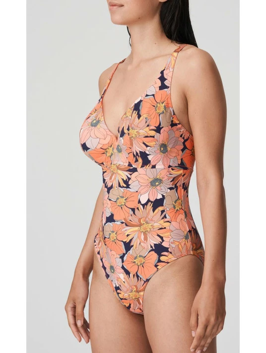 Maillot 1 pièce rétro et élégant avec un motif floral exotique.
