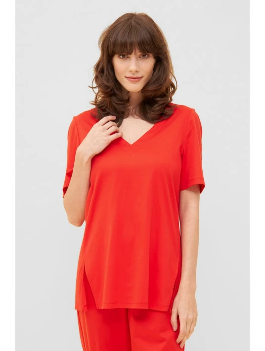 Pyjama manches courtes rouge orangĂ© de la marque FĂ©raud.Â