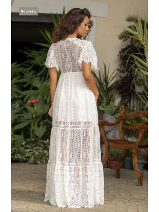 Robe longue manches courtes en dentelle de la marque Marjolaine