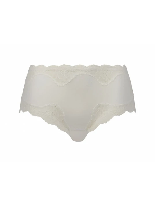 Shorty en modal. Taille, cuisses et dos en galon de dentelle.