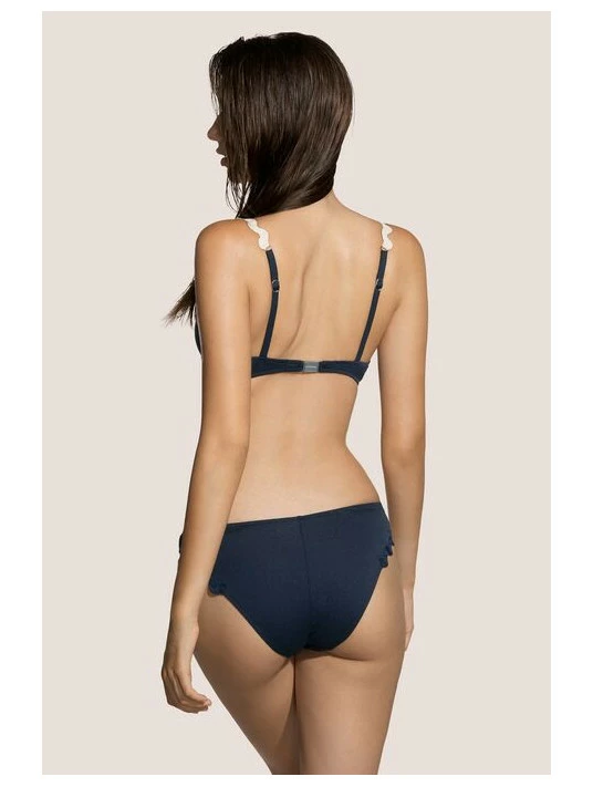 Jolie culotte avec broderie contrastante sur le côté. Navy Blue, la broderie apparaît en contraste écru sur le devant