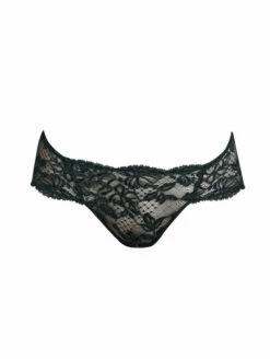 Culotte brésilienne mi-haute. Devant en dentelle florale élastique, arrière en microfibre millefoglie. Deep forest est un vert foncé presque noir