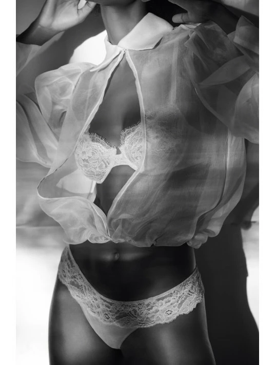 Culotte brésilienne mi-haute, réalisée entièrement en dentelle leavers haute couture.