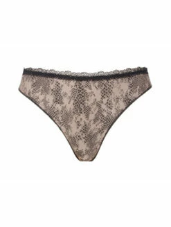 Tanga en maille imprimée. Dos plié en deux sans élastique.