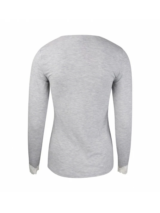 Tee-shirt en modal. Décolleté devant et bas de manches en galon de dentelle.