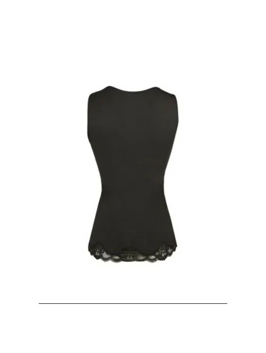 Tee-shirt en modal. Décolleté devant et bas de buste en galon de dentelle.