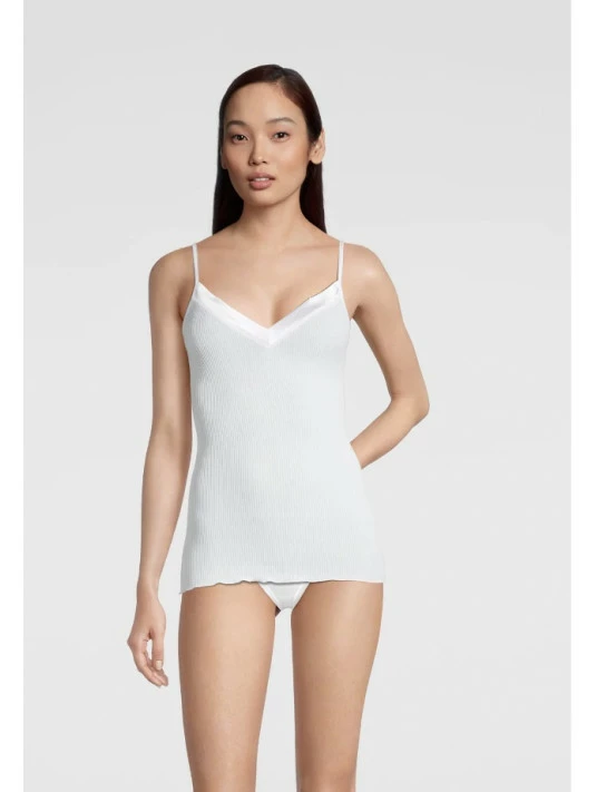 Décolleté en V bordé d’un large galon de satin