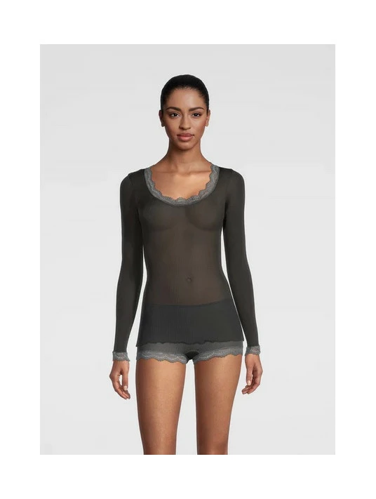 Top Manches Longues Col Rond Dentelle SOIE