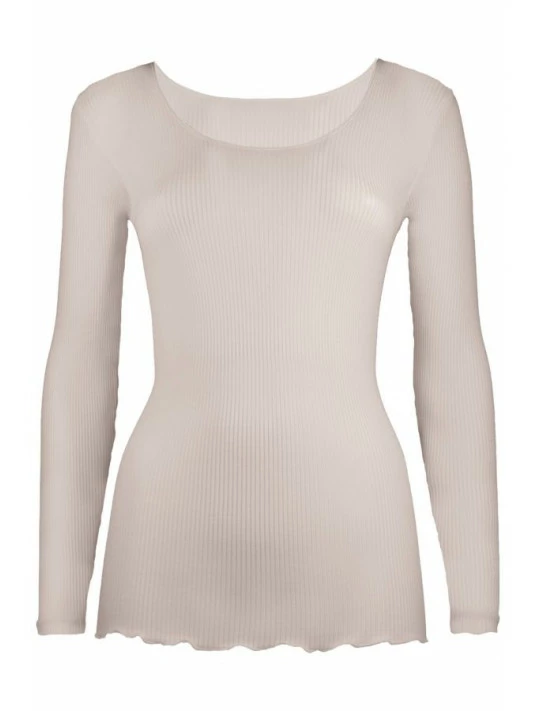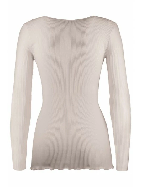 Top manches longues en maille plissée laine et soie.