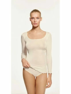 La maille plissĂ©e laine MĂ©rinos est mĂ©langĂ©e Ă de la soie pour un toucher des plus agrĂ©ables. RĂ©gulation de la tempĂ©rature et de l’humiditĂ©Â