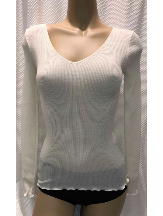 Oscalito – Top manches longues en maille plissĂ©e laine merinos et soie naturelle
