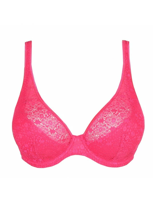 Dentelle vintage all-over, dentelle à cils sensuelle sur les bretelles et dans le dos, coupe triangle tendance et bonnets au décolleté encore plus marqué…